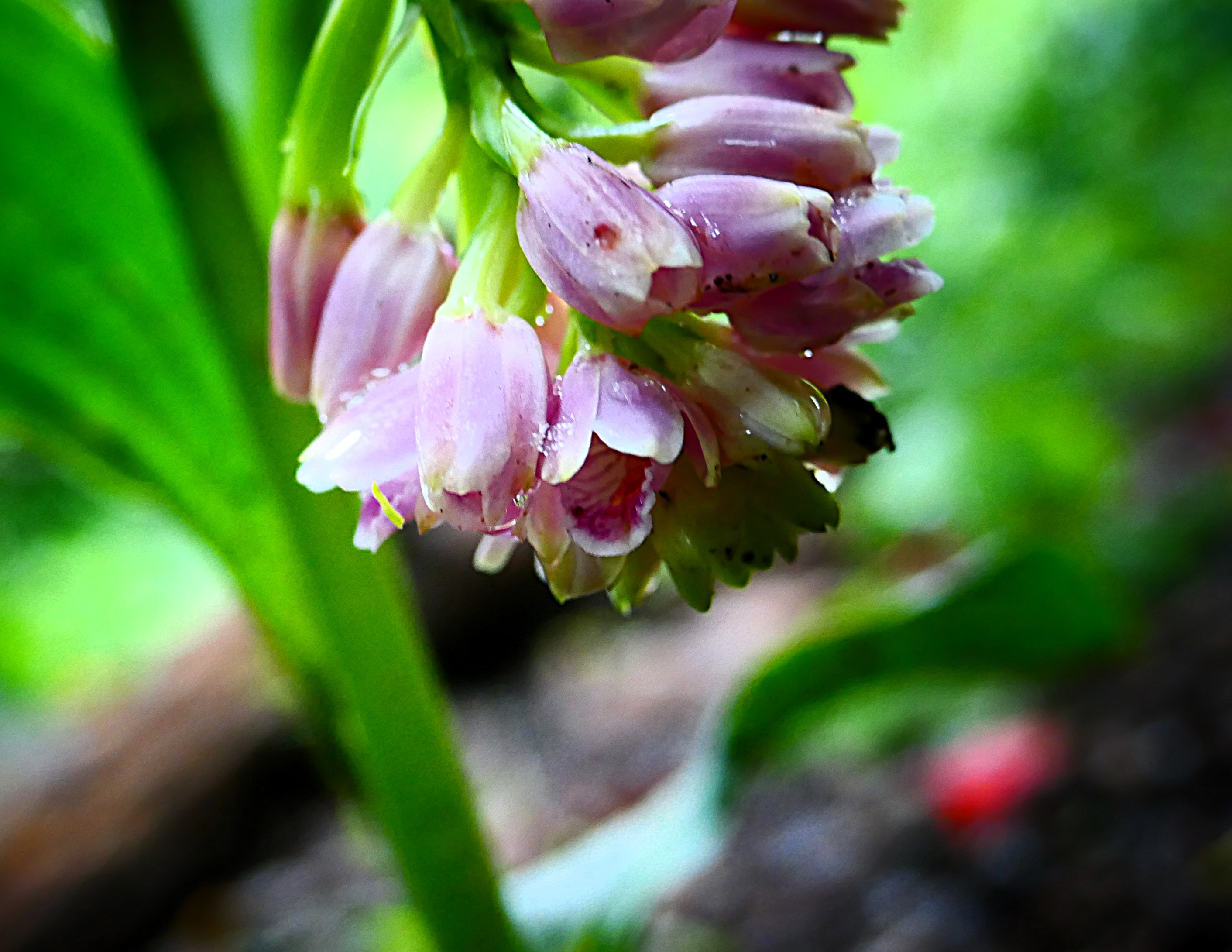 The Indian Screw tree (Helicteres isora), a deciduous forest species, grows in moist places. These shrubs began to appear with increasing moisture in the valley, possibly through the agency of nectar-loving birds like Purple-rumped Sunbirds of which it is a host. The birds, in turn, pollinate and disperse seeds. Positive relationships such as these augur well for regeneration.