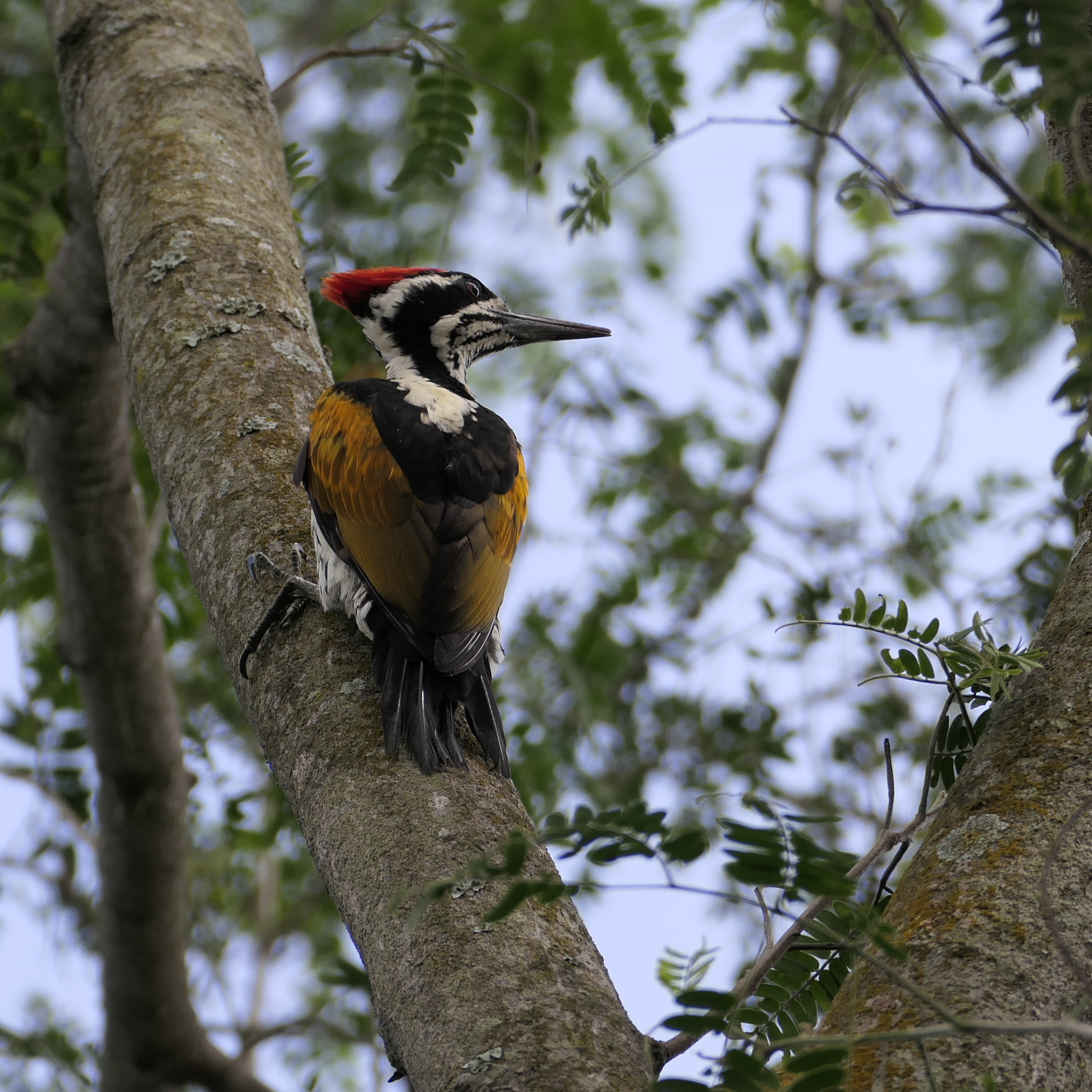 The most compelling sound that pulls me out of the haze of drowsiness is a series of sharp, staccato knocking and drumming. During the early years, coping with a new house on an inaccessible farm meant dealing with workmen at odd hours of the day. Carpenters starting work early in the morning was unusual, but not improbable, though not entirely welcome! Imagine my shock when three woodpeckers sat at the window of the first floor, two boring the frame and tapping the glass with precision and devastating speed, while the third kept watch. The Baage tree (Albizia lebbeck) just outside the window made their task easier. The Baage acquires new holes every other day, and the window has survived the onslaught of the Black-rumped Flameback (Dinopium benghalense), and the larger and less common White-naped Woodpecker (Chrysocolaptes festivus).