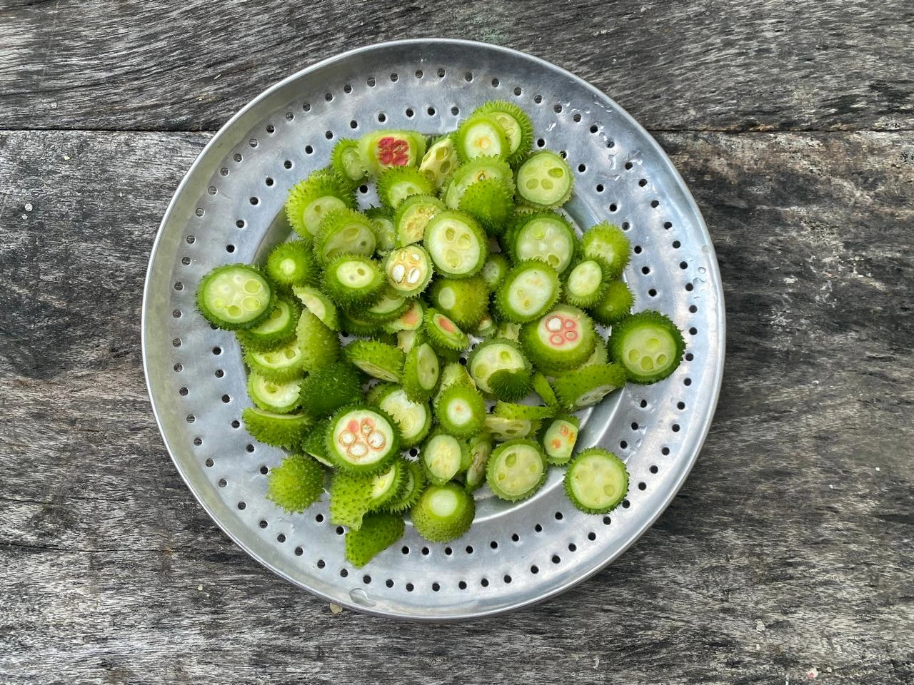 Cooked as a vegetable (find a local recipe for it at the end of this article), the spine gourd is a semi-wild species of flowering plant in the gourd family. It is found in nature with minimal human interference in Punjab, Uttar Pradesh, Rajasthan, Madhya Pradesh, Kerala, and in the Western Ghats of Maharashtra, as well as in other regions of India and Sri Lanka, reaching an elevation of 1,525 metres in the Himalayas.