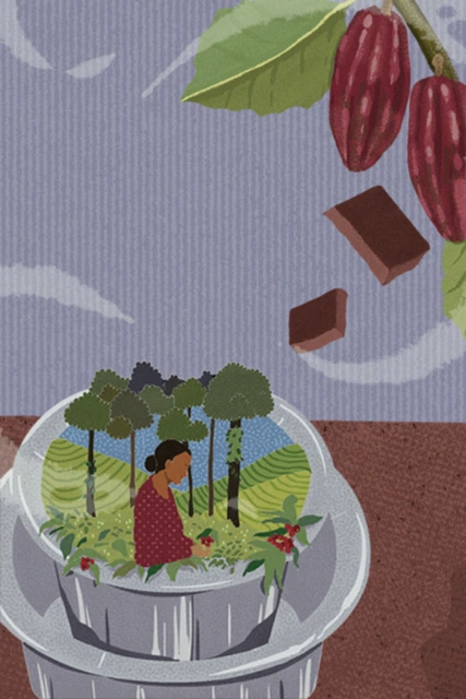 Climate change, increased temperatures, and erratic rainfall are already affecting growth and yields for both coffee and cocoa. Declining global yields of coffee—around 20% in Vietnam and 16.5% in Indonesia, both key producer countries—and cocoa (13%) inflated the prices of both commodities to an all-time high in 2024—high rates that could still not make up for the losses incurred by growers.