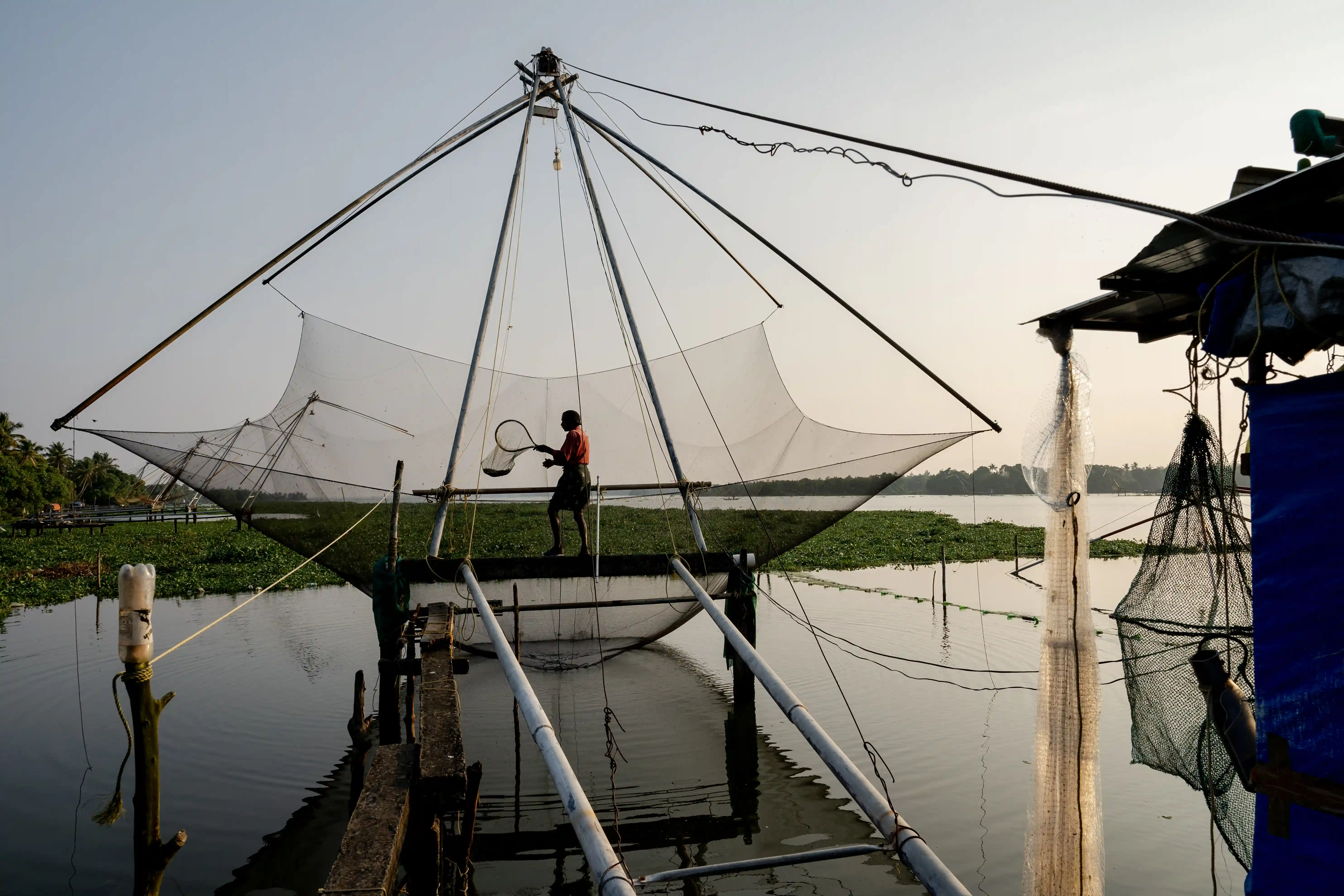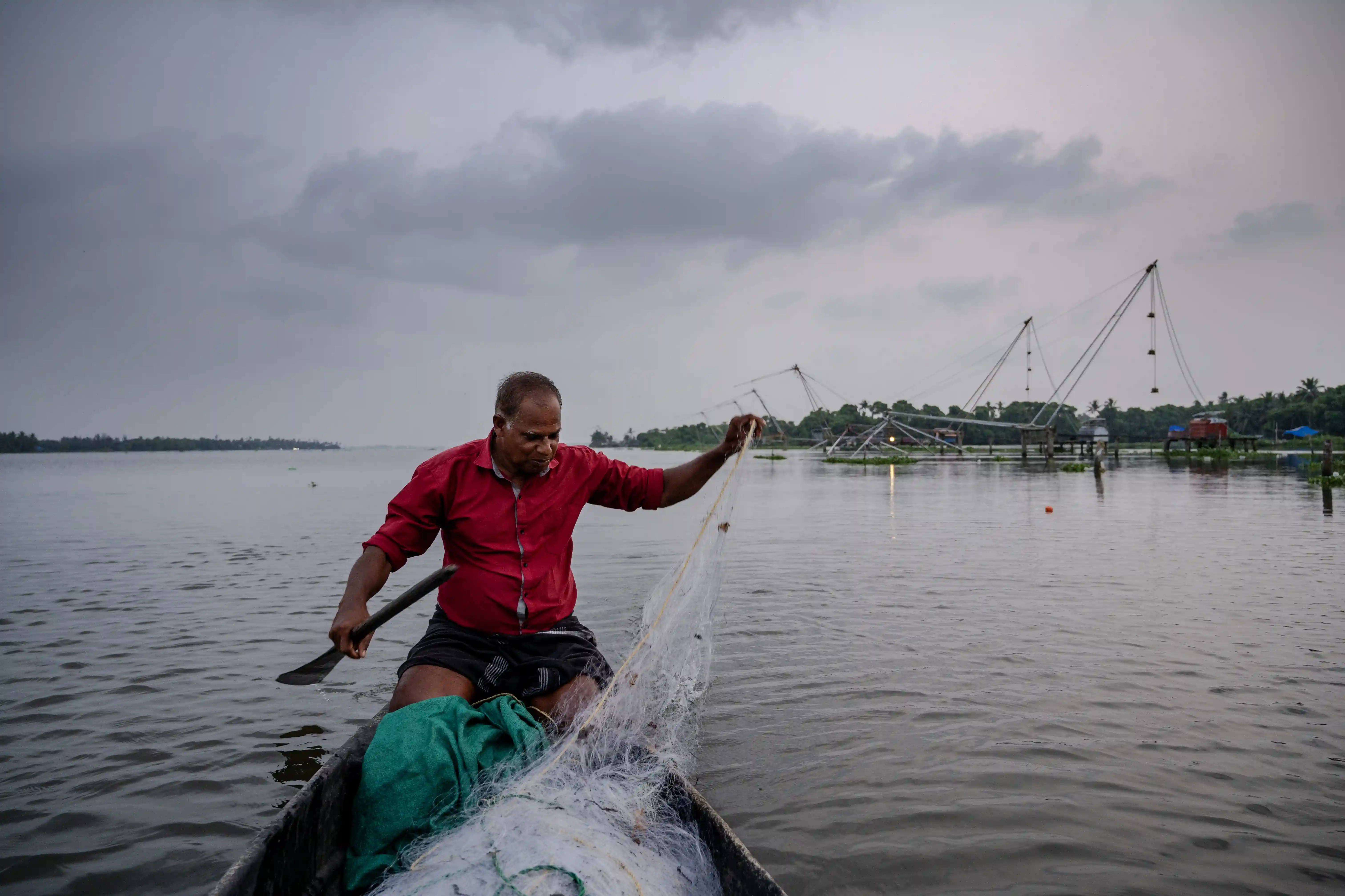 But today, as Kerala's backwaters face unprecedented stress, from pollution to damming, from agricultural runoff to urban sprawl and the entry of invasive piscine species, the Karimeen finds itself swimming through a radically altered world. The fish that once filled nets and pots in such abundance that it defined regional cuisine, has now grown scarce. A reminder that even creatures shaped by millions of years of evolutionary adaptation can falter when change accelerates beyond their capacity to respond. “We can’t rely on the Karimeen alone for our livelihood like we used to,” says Arun, a fisherman who operates out of Fort Kochi. Originally from Vypeen, an island in Kochi’s backwater estuary, Arun started fishing Karimeen at the age of 10 with his bare hands.