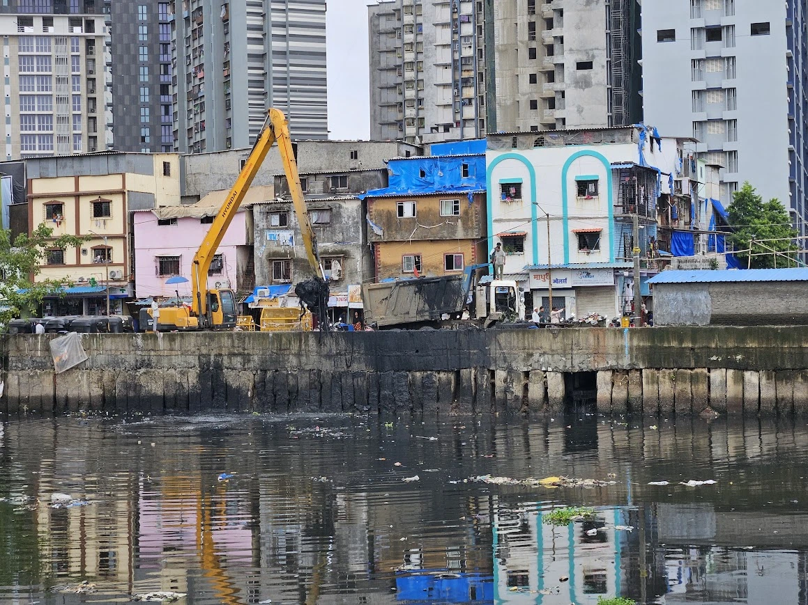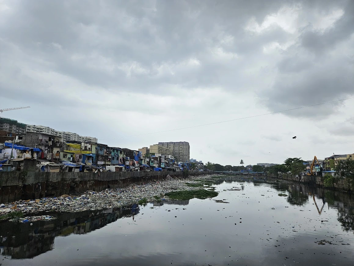 Alongside reclamation, encroachments—slums and unauthorised construction—significantly narrowed the river’s flow path, reducing its natural capacity to carry floodwaters and causing severe bottlenecks.