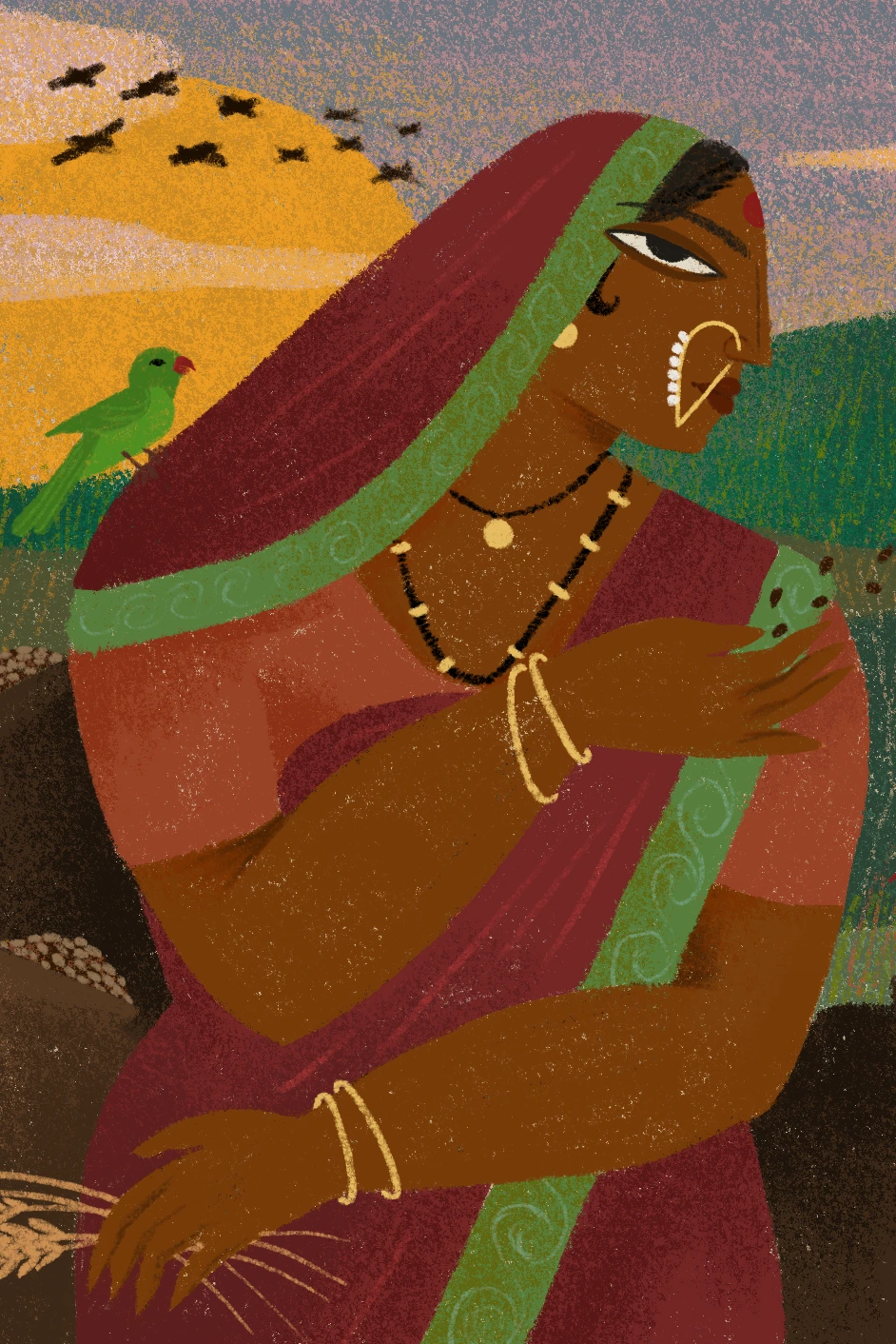 She recounts her experience of planting an indigenous variety of bajra or pearl millet. For the first three years, the crop grew well. Birds arrived at the fields and pecked at it, showing some interest in the grain. By the fourth year, however, something remarkable happened: flocks of birds descended onto the field and devoured the entire crop. Strikingly, they left the surrounding bajra fields, sown with modern hybrid grains, untouched. The birds had a clear preference; they didn’t care for bajra that was harder, bitter, and far less nutritious. The produce from the indigenous seeds, on the other hand, was naturally sweet and soft. “We would crush the grain in our palms and eat it fresh,” she recalls.