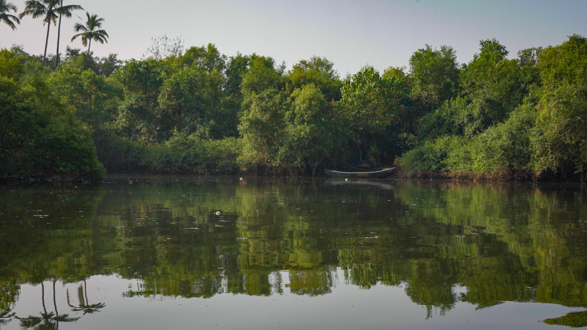 Traditional fishing boats use horsepower engines. Swamini decided to row hodhis (smaller, hand-rowed boats) along the length of the creek so as to not disturb the mangrove’s biodiversity.