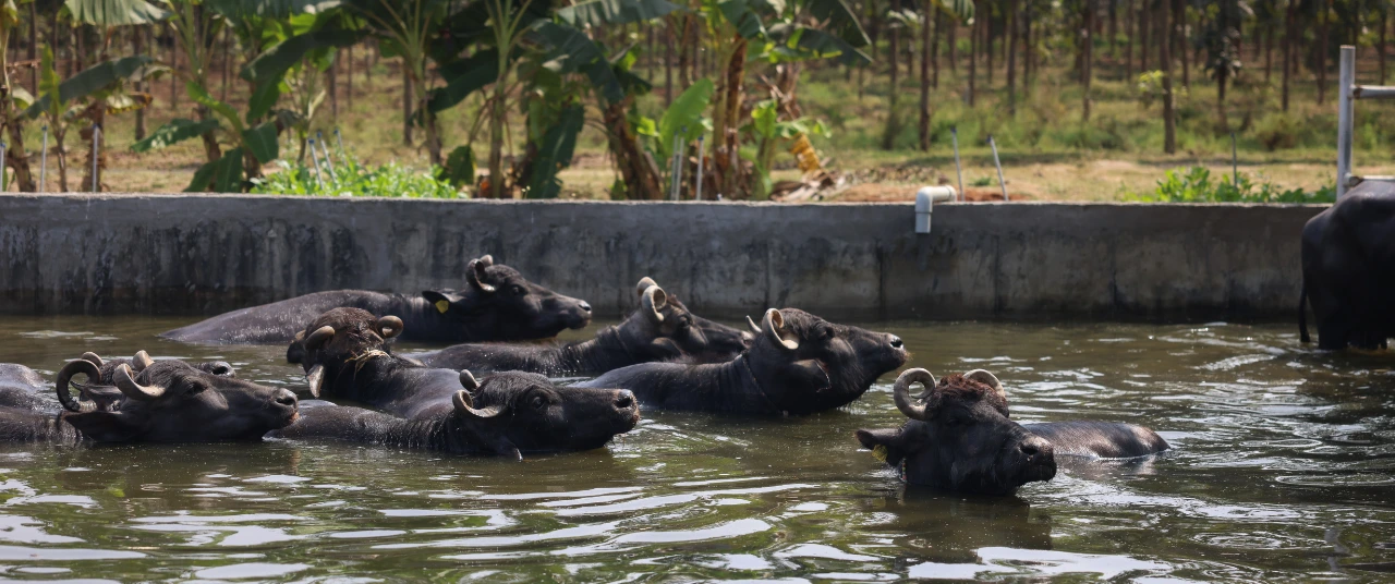 Cattle are preeminent icons of fertility, abundance, and prosperity in most rural communities in south India. The cow is a symbol of Kamadhenu, the mythical wish-fulfilling cow who holds within her being the entire cosmos and 330 million deities. The unique capacity of the cow to digest plant material and convert it into soil-enriching manure is attributed to billions of microorganisms which populate the stomach, rather like the deities contained within Kamadhenu! In biodynamics, a cow’s horns are perceived to be of huge functional and spiritual importance, with a subtle influence on the digestive system and as ‘antennae’ that harness cosmic energies. She is the mediator between the cosmic forces and the earth.
