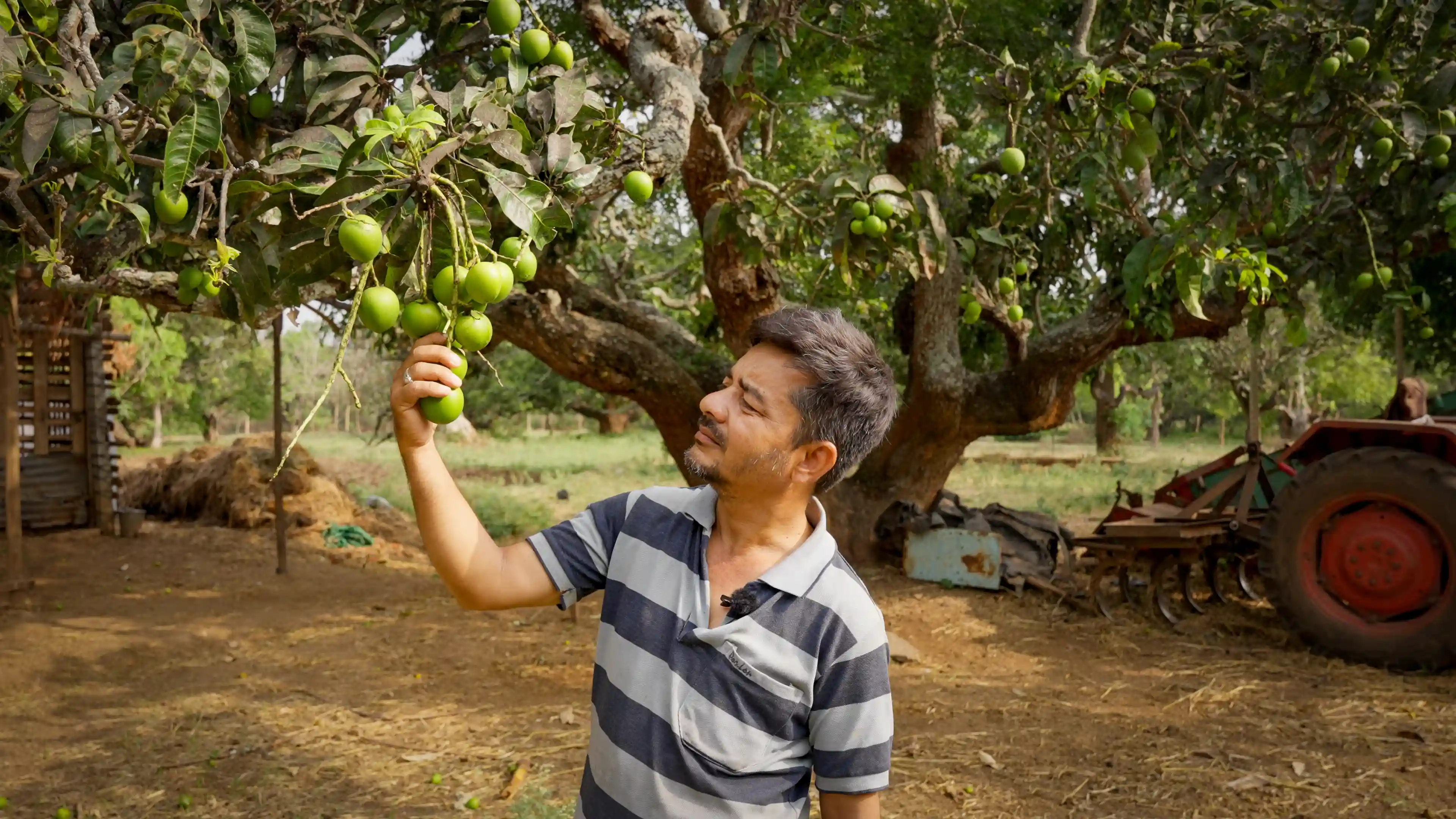 In 1999, on a day when he was spraying pesticides on his farm, Khan felt dizzy. This experience convinced him to switch to organic farming. He converted his land, gunta by gunta, over the course of five years. Now, the manure he mixes for his paddy nourishes the mango trees too.